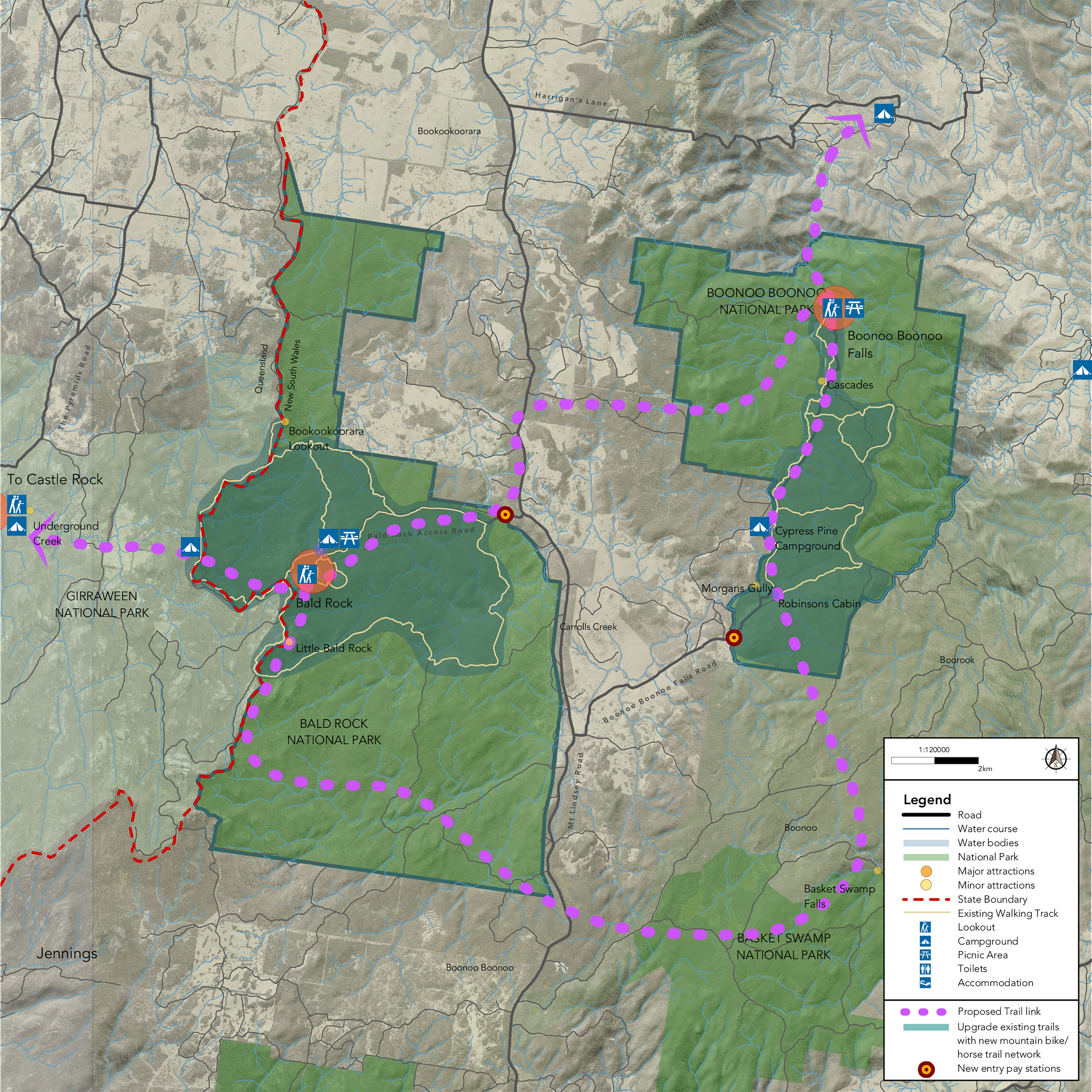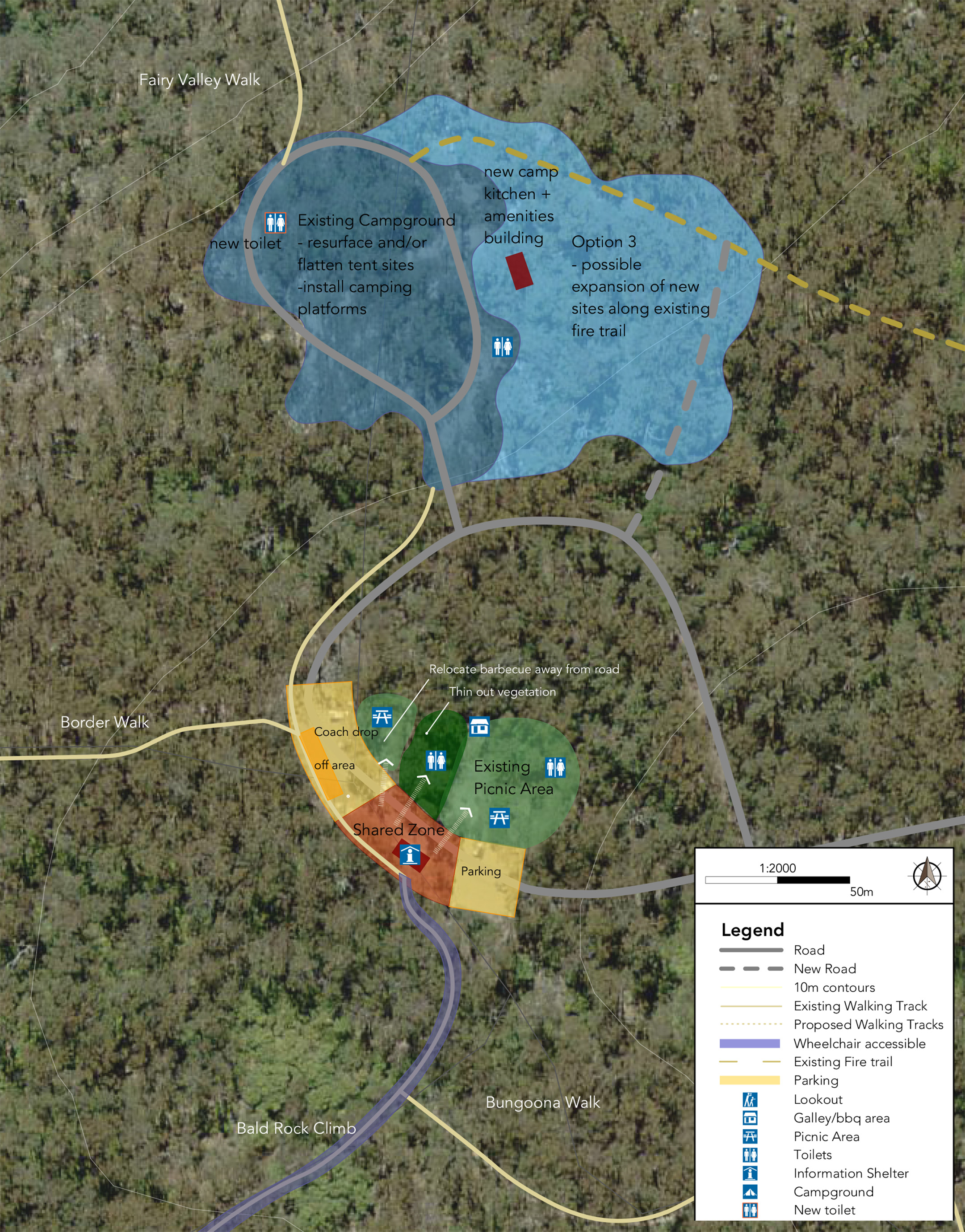 Proposing a variety of upgrade options to park facilities in the unique hinterland region of Bald Rock and Boonoo Boonoo Parks